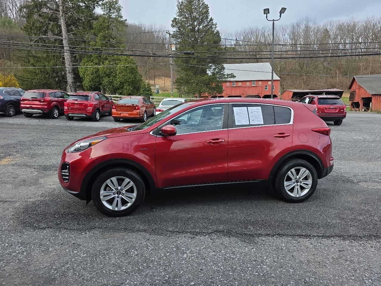 Introducing a sleek and stylish 2018 Burgundy Kia Sportage that is sure to turn heads wherever you go! This all-wheel drive beauty is powered by a 2.4L GDI DOHC 16V I4 engine, paired with an electronic 6-speed automatic transmission for a smooth and efficient ride. With a striking exterior featuring 17" alloy wheels, fog lamps, and a lip spoiler, this Sportage stands out from the crowd.